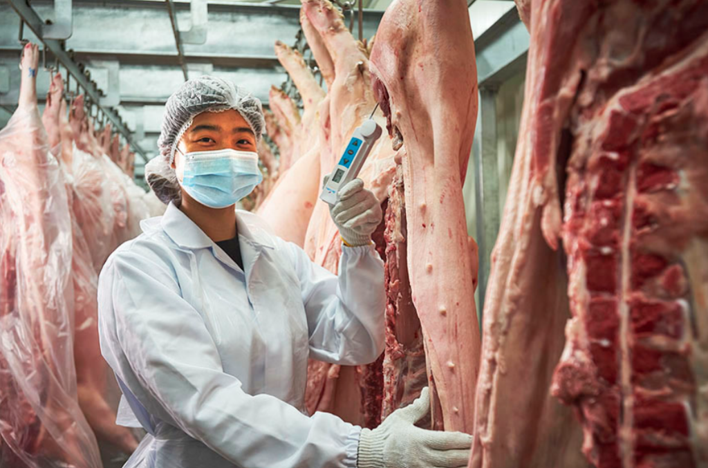 The customer wanted a full solution for the production site in order to increase productivity. Tiong Lian considered automation while planning the new production facility and invested $7 million in installing automatic conveyor belt systems between the different floors and workstations, setting up overhead conveyors and a crate system to transport raw pork, and purchasing meat slicers with infrared sensors.
